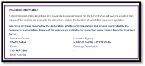 - A new question was added to Resales template that confirms whether the association provides insurance coverage. The Resales representative can answer this correctly with a Yes or No radio button and the information is on the PDF output.